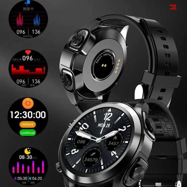 Αυτή η αξιοσημείωτη συσκευή ενσωματώνει άψογα ένα έξυπνο ρολόι με ασύρματα ακουστικά, επιτρέποντας εύκολη σύνδεση Bluetooth για μια καθηλωτική μουσική εμπειρία. Με τον μαγνητικό σχεδιασμό του, απολαύστε αδιάλειπτη μουσική κατά τη διάρκεια της προπόνησης.