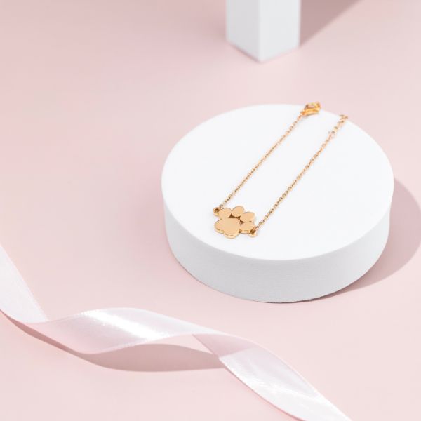 Σας παρουσιάζουμε το βραχιόλι Paw Bracelet σε ένα λαμπερό χρυσό χρώμα, ένας φόρος τιμής στην άνευ όρων αγάπη των γούνινων φίλων μας. Αυτό το γοητευτικό βραχιόλι διαθέτει ένα λεπτό, αλλά περίτεχνα λεπτομερές γούρι από πατούσες, που γιορτάζει τον δεσμό μεταξύ ανθρώπων και ζώων. Κατασκευασμένο με φροντίδα και ακρίβεια, προσθέτει μια πινελιά ζεστασιάς και στοργής στο στυλ σας. Είτε το φοράτε ως υπενθύμιση του αγαπημένου σας κατοικίδιου είτε ως δήλωση συμπόνιας για τα ζώα, το βραχιόλι μας Paw Bracelet σε χρυσό χρώμα αποπνέει, τόσο κομψότητα όσο και συναισθηματισμό, καθιστώντας το ένα τέλειο αξεσουάρ για κάθε φιλόζωο.