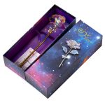 Κάθε τριαντάφυλλο είναι κατασκευασμένο με μια ιριδίζουσα, ολογραφική επίστρωση που λαμπυρίζει υπέροχα στο φως, δημιουργώντας μια λάμψη που μοιάζει με γαλαξία και είναι απλά μαγευτική.