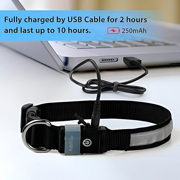 Δεν χρειάζεται πλέον να αντικαθιστάτε τις μπαταρίες. Αυτό το κολάρο φορτίζει μέσω καλωδίου USB (περιλαμβάνεται), παρέχοντας έως και 10 ώρες φωτός μετά από φόρτιση 2 ωρών. Μπορείτε να το φορτίσετε μέσω τηλεφώνου, φορητού υπολογιστή, power bank ή άλλων.