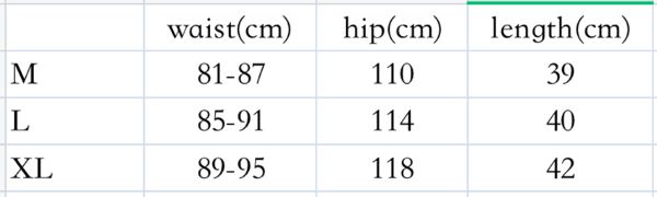 Μέγεθος: M – Μέση 81-87 cm – Γοφοί 110 cm – Μήκος 39 cm