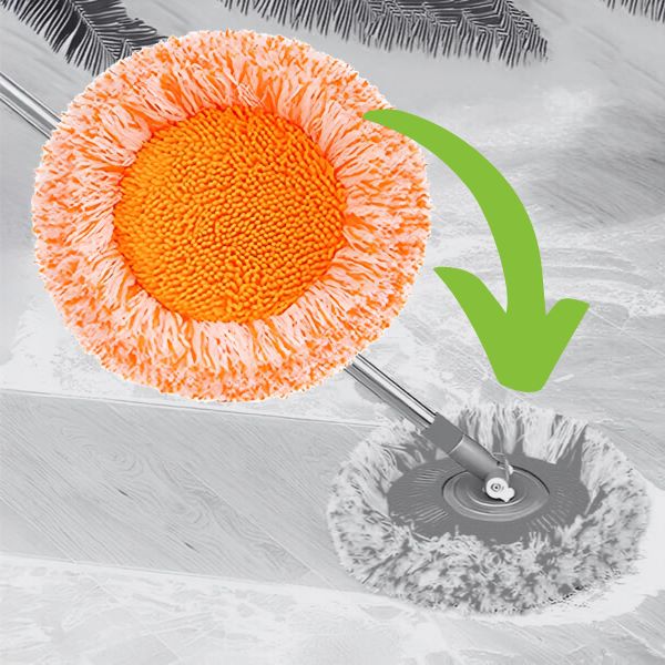 Η λαβή της σφουγγαρίστρας μπορεί να ρυθμιστεί ανάλογα με τις ανάγκες σας. Με τη στρογγυλή κεφαλή της σφουγγαρίστρας, μπορείτε να φτάσετε ακόμα και στις πιο δυσπρόσιτες επιφάνειες, όπως διάφορες γωνίες, το ταβάνι κ.λπ. Τα φύλλα μπορούν να πλυθούν στο πλυντήριο στους 40°C.