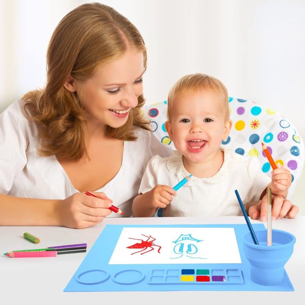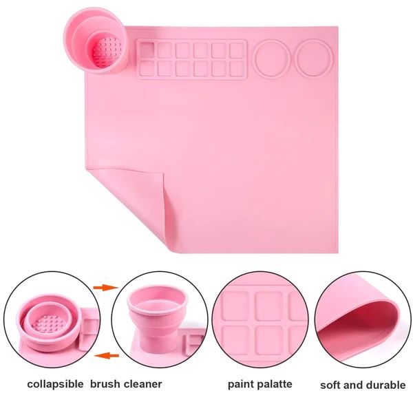 Το πρώτο μας χαλάκι με ενσωματωμένο πτυσσόμενο κύπελλο καθαρισμού πινέλου. Το κύπελλο καθαρισμού πινέλων έχει σχεδιαστεί για να συγκρατεί νερό και να καθαρίζει τα πινέλα ζωγραφικής.