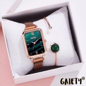 Ως μέρος του σετ, θα λάβετε ένα σύγχρονο ρολόι σε στυλ vintage μαζί με ένα υπέροχο βραχιόλι που συμπληρώνει το ρολόι και εφαρμόζει άνετα στον καρπό σας. Το βραχιολάκι είναι ρυθμιζόμενο για τέλεια εφαρμογή.