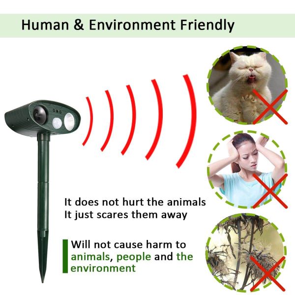 Το απωθητικό ζώων λειτουργεί με υπερήχους, είναι μικρό και εντελώς μη μολυσματικό. Το απωθητικό δεν βλάπτει αυτά τα ζώα, απλώς τα απομακρύνει, εκπέμποντας υπερηχητικά κύματα που παρεμβαίνουν στην ακοή και το νευρικό σύστημα των διάφορων οργανισμών.