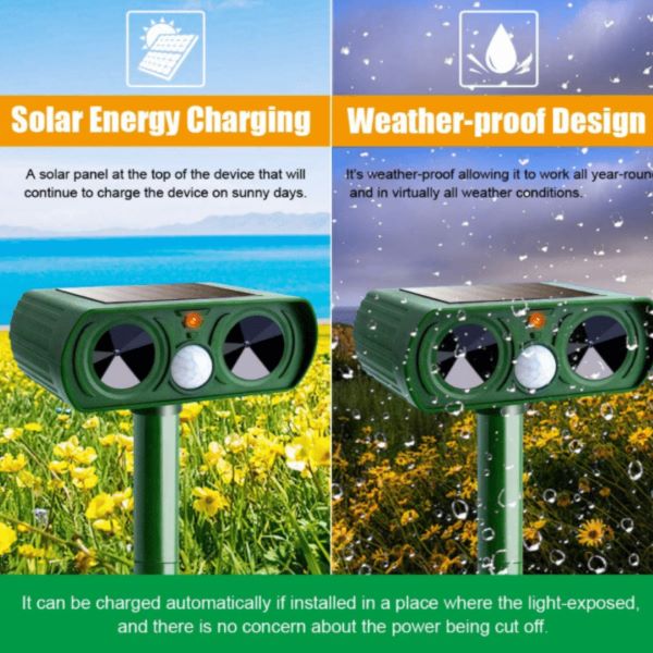 Από τώρα και στο εξής, δεν θα έχετε πλέον προβλήματα με ανεπιθύμητα ζώα στον κήπο, το αγρόκτημα ή τον οπωρώνα σας. Αυτό το αποτρεπτικό για τα ζώα απομακρύνει αποτελεσματικά όλα τα ανεπιθύμητα ζώα από τον κήπο σας. Απωθεί όλα τα είδη ζώων, όπως ποντίκια, τυφλοπόντικες, γάτες, σκύλους, πουλιά, φίδια, ποντίκια, ελάφια, κ.α….