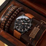 Ένα σετ από ένα ρολόι και τρία βραχιόλια σχεδιασμένο για τον σύγχρονο άνδρα που εκτιμά την απλότητα και την κομψότητα.