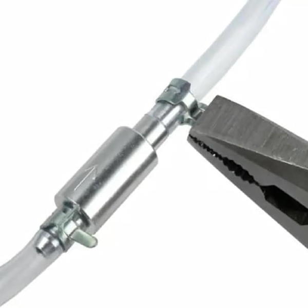 Η σύνδεση του σωλήνα με το σύστημα φρένων της μοτοσικλέτας σας γίνεται πανεύκολα χάρη στα παρεχόμενα κλιπ. Αυτή η γρήγορη εγκατάσταση σας επιτρέπει να ξεκινήσετε αμέσως τη διαδικασία εξαέρωσης των υγρών φρένων.