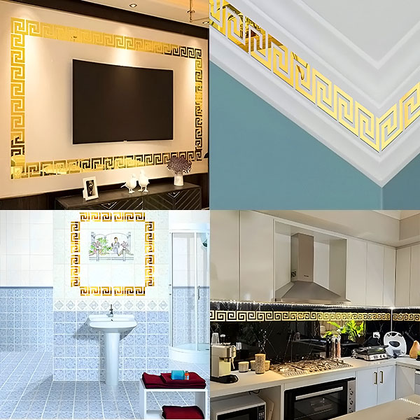 Αναβάθμιση μπάνιου: Αναβαθμίστε τη διακόσμηση του μπάνιου σας τοποθετώντας αυτοκόλλητα στους τοίχους ή γύρω από καθρέφτες, αντανακλώντας το φως και δημιουργώντας μια πιο ευρύχωρη, πολυτελή αίσθηση